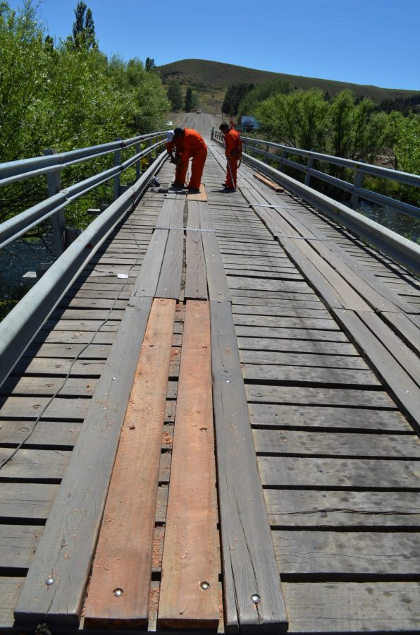 Esta semana se ejecuta la reparación del tablero de madera del puente sobre el Río Malleo.