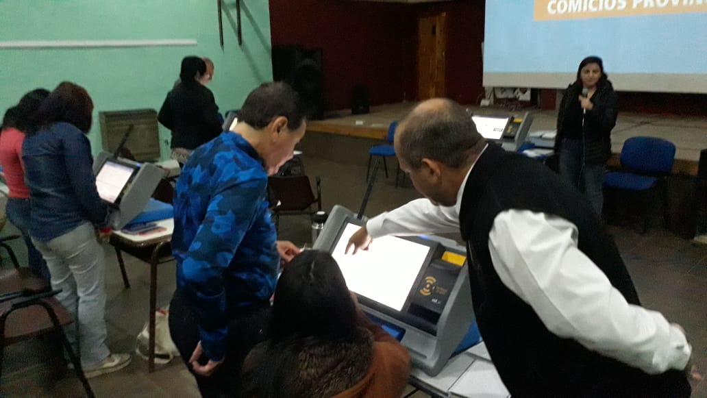 La capacitación a las autoridades de mesas se realizó por grupos, ya que se contaba con 8 máquinas, comenzando la misma a las 08:00hs., extendiéndose hasta las 19:00hs.