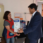 Momento en que la Sra. Elizabet Palleres, recibe este elemento tan importante para la institución.