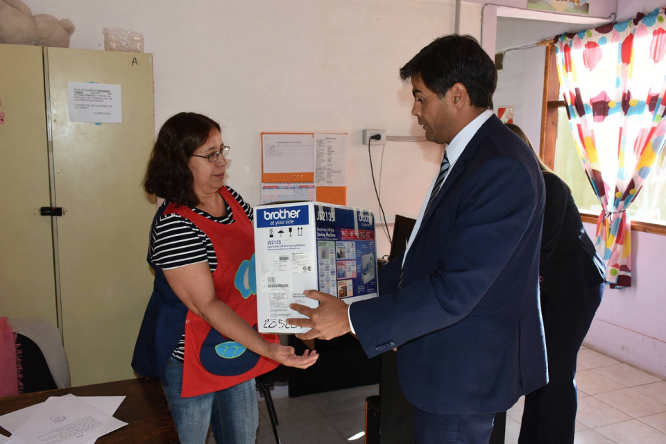 Entrega de máquina de coser a CDI, de Junín de los Andes