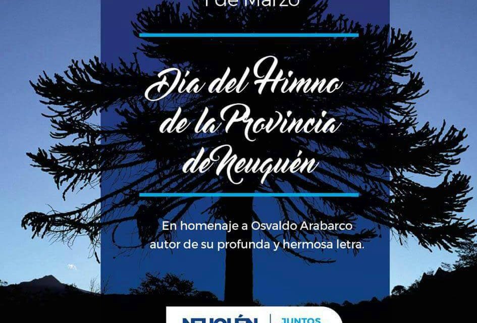 La fecha conmemorativa coincide con el fallecimiento de Osvaldo Arabarco, autor de la letra junto con Marcelo Berbel y en el año 2016, la Legislatura Neuquina instituyó esta fecha como el día del Himno de la Provincia de Neuquén, en homenaje a él, fallecido en el año 2015.