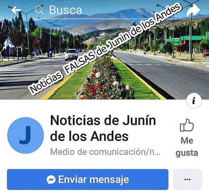 La noticia falsa presentan hechos falsos como si fueran reales, y hacen mención directamente al portal de facebook “Noticias de Junin de los Andes”