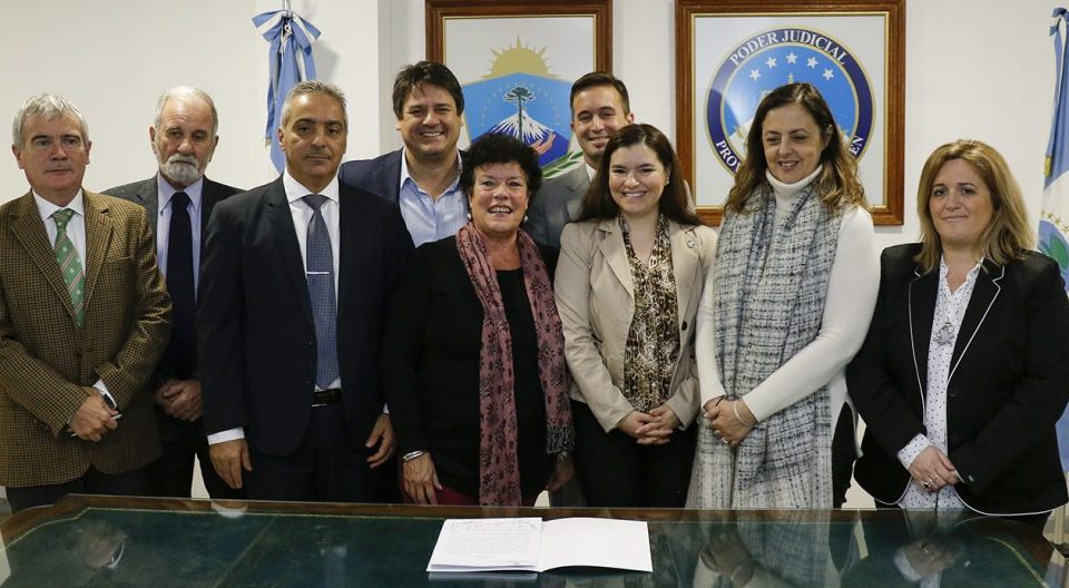 En representación de las partes, firmaron el convenio el presidente del Tribunal, Roberto Busamia; la subsecretaria de Acceso a la Justicia de la Nación, María Fernanda Rodríguez; los ministros de Gobierno de la provincia, Juan Pablo Prezzoli; de Trabajo, Desarrollo Social y Seguridad, Mariano Gaido y de Ciudadanía, Vanina Merlo; y la subsecretaria de las Mujeres, Patricia Maistegui.