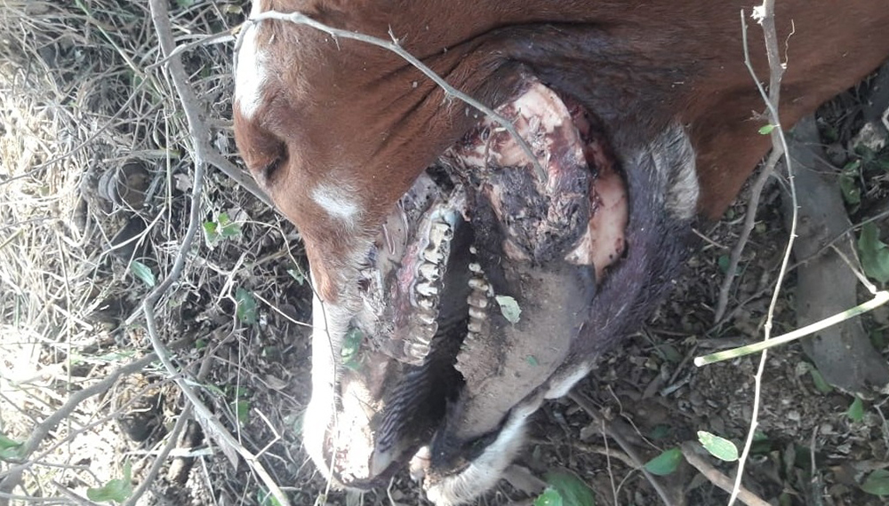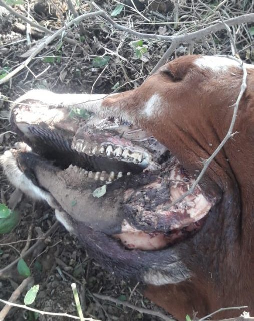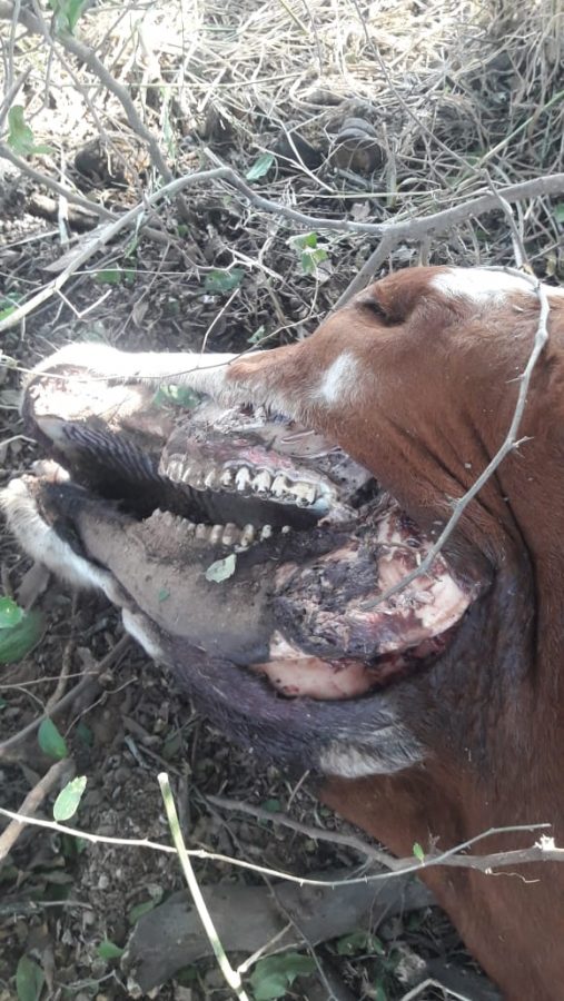Compartimos aquí las fotos del cadáver, dado que Facebook prohíbe que este tipo de imágenes se difundan. Transmisiones de masacres en Nueva Zelanda sí, pero las fotos de una vaca mutilada, no.