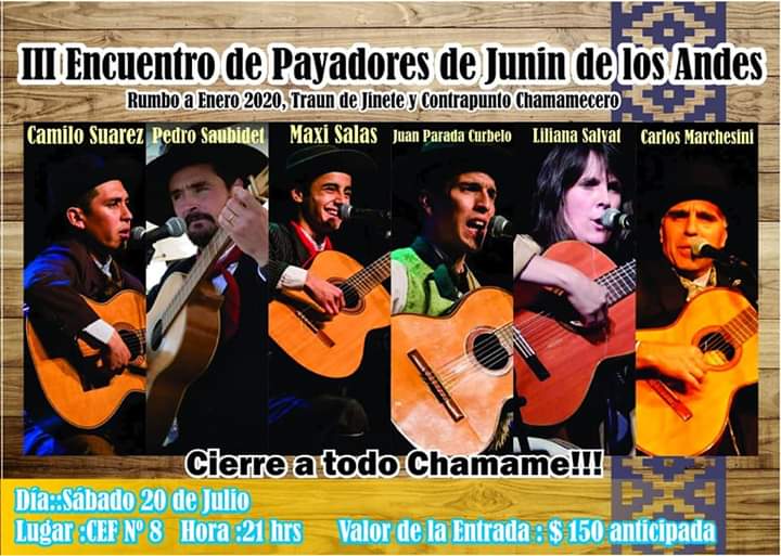 Los payadores en Junín de los Andes de la mano de la productora Arreando Coplas “El 3° Encuentro de Payadores” el cual fue declarado de interés municipal por el Honorable Consejo Deliberante de la Localidad.
