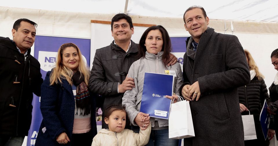 El gobernador Omar Gutiérrez entregó hoy diez viviendas en Bajada del Agrio y anunció que están próximas a iniciarse otras cuatro. Se trata de diez unidades de tres dormitorios y 65 metros cuadrados, con cocina, comedor y baño, que contaron con una inversión cercana a 11 millones de pesos.