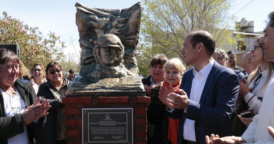 El gobernador Omar Gutiérrez participó hoy del acto de inauguración del monolito homenaje al veterano Tulio Esteban Lacroix, caído en la guerra de Malvinas durante el hundimiento del ARA General Belgrano, el 2 de mayo de 1982.