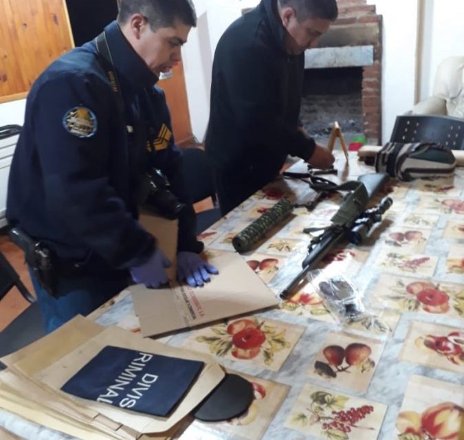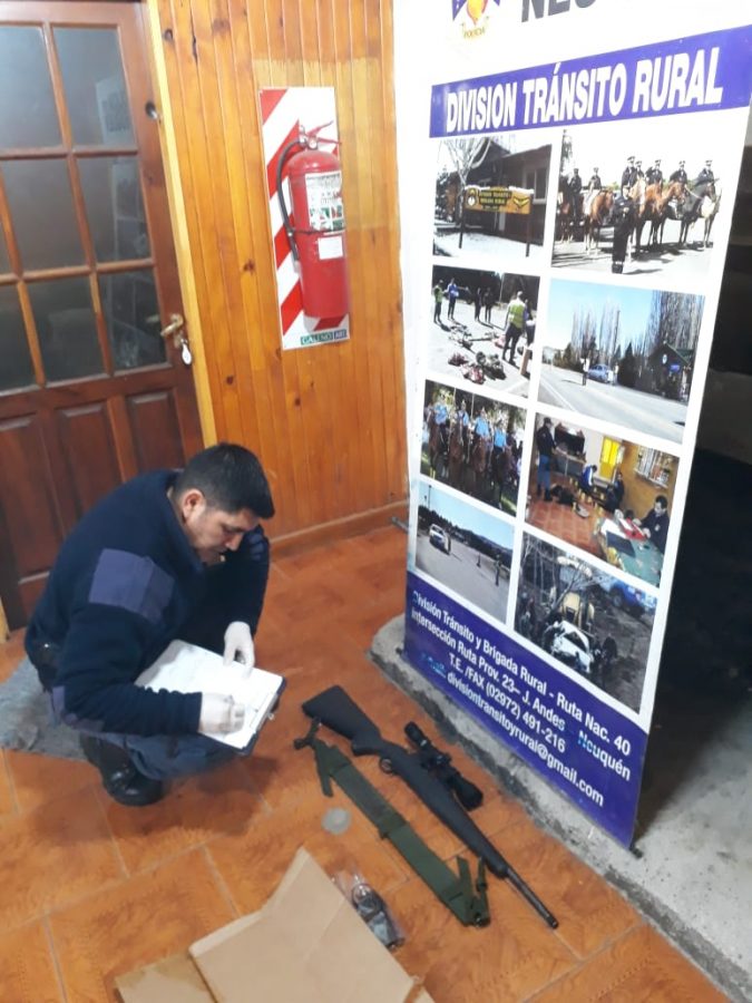 El mismo es demorado para su identificación en el puesto de control N°1 en el acceso norte a la localidad, se identificó una camioneta Ford Ecosport, en que circulaban dos personas de sexo masculino, mayores de edad, uno de ellos empleado municipal de esta ciudad, al momento de la identificación el personal policial advierte que los mismo se encontraban con sus prendas de vestir inferiores húmedas, se les consultó de dónde provenían, al no dar explicación satisfactoria sobre la pregunta, se procedió a realizar una visualización desde el exterior del rodado notando que en el asiento trasero se visualizaba la culata de un arma larga, por lo que se trasladó el procedimiento a la división tránsito dónde se realizaron las diligencias judiciales, el personal de criminalística de esta ciudad procedió al secuestro de una carabina .308 con mira telescópica y punta roscada, un elemento cilíndrico el cual presumiblemente se trataría de un supresor de sonido (Silenciador), finalizada las diligencias se notificó de la causa al masculino propietario del arma de fuego por presunta infracción a la Ley 20429, recuperando la libertad posteriormente.