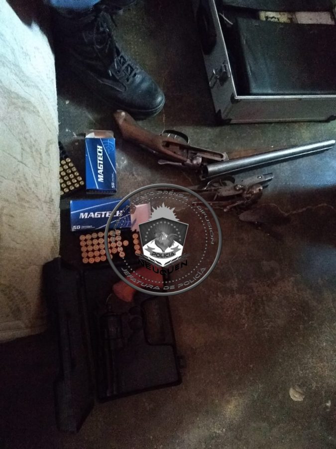 Una vez en el domicilio, los uniformados procedieron al secuestro de un arma de fuego tipo pistolón y un revólver calibre 380. Asimismo en el lugar se procedió al secuestro de más 70 municiones de distintos calibres como así vainas servidas calibre 22, entre otros elementos relacionados al causa investigada.