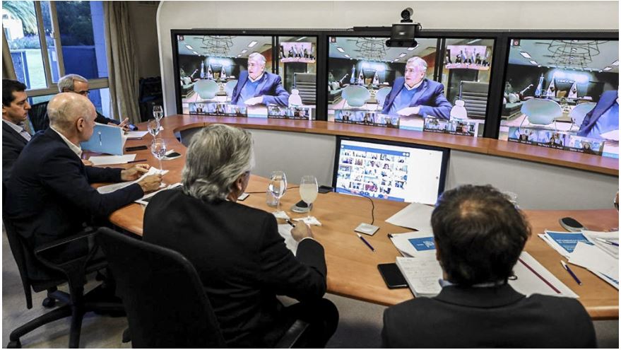 Desde la residencia de Olivos, el mandatario se comunicó mediante videoconferencia con los 23 gobernadores y el jefe de Gobierno porteño, Horacio Rodríguez Larreta, para analizar la situación de cada distrito.