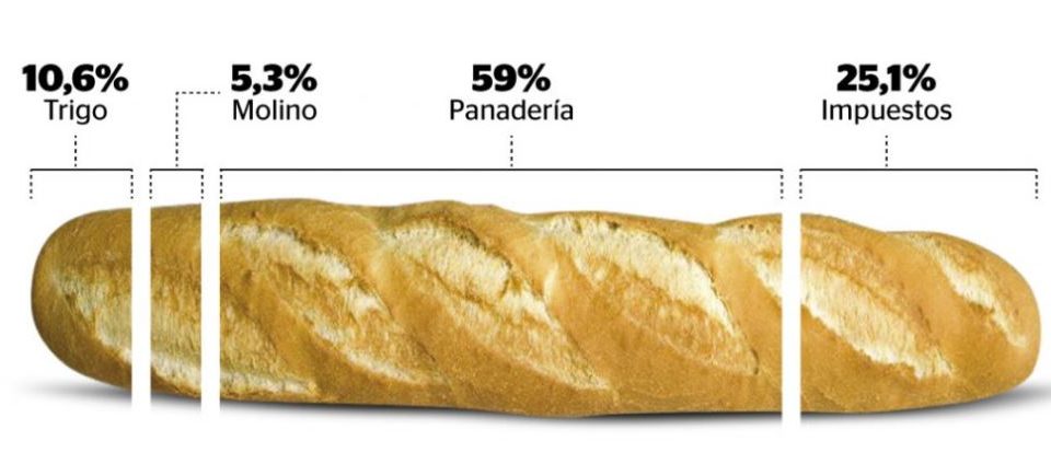 La economista señaló además que en ese camino productivo, el precio se va componiendo por los costos (59%), impuestos (25%) y el resultado (16%), “esto quiere decir que, de 1 kg de pan, 590 gramos representan los costos de producirlo, 250 gramos son impuestos, y 160 gramos es el resultado”.