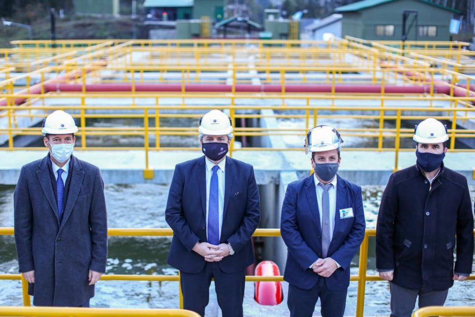 El presidente Alberto Fernández recorrió las instalaciones de la Planta de Tratamiento de Líquidos Cloacales de Villa La Angostura, una obra desarrollada por el Ente Nacional de Obras Hídricas de Saneamiento (ENHOSA) que demandó una inversión de 196 millones de pesos y beneficia a 13.000 vecinos. Lo acompañaron el gobernador de Neuquén, Omar Gutiérrez, y el intendente local, Fabio Stefani.