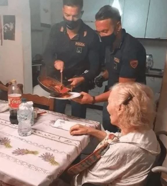 La policía envió a Antonio y Giuseppe, dos agentes de la fuerza italiana que intervinieron, tocaron el timbre de la casa de la mujer sin obtener respuesta hasta que lograron que un vecino la abriera. La puerta principal del apartamento estaba entreabierta: una vez dentro, después de ayudar a la anciana, los dos agentes se dirigieron a la cocina para preparar la cena: ravioles con salsa de tomate.