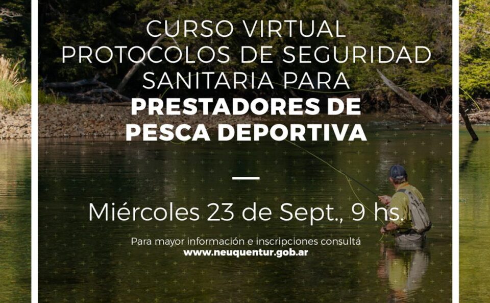 El próximo 23 de septiembre a las 9 se dictará un nuevo Curso Virtual en Protocolos de Seguridad Sanitaria para Prestadores de Pesca Deportiva de la Provincia del Neuquén destinado a guías profesionales habilitados por el Ministerio de Turismo provincial.