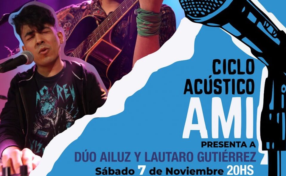 El ministerio de las Culturas invita a disfrutar de la presentación del dúo Ailuz y Lautaro Gutiérrez, en el Ciclo Acústico AMI. Será el sábado 7 de noviembre a las 20 por el canal de YouTube del ministerio. Los artistas tocarán tres temas con una duración total de 20 minutos.