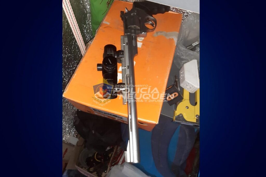 Por esta razón, en horas de la mañana, uniformados de la Dependencia Policial N°20 cumplieron con la diligencia judicial identificando en el primer domicilio a dos personas de 39 y 29 años de edad y hallando un arma de fuego pistola calibre 45 mm, un arma de fuego tipo escopeta recortada, un arma de fuego revolver con siete alveolos calibre 22mm con caño extendido y mira telescópica incorporada, un arma de fuego revolver Calibre 38 mm de seis alvéolos, todas sin documentación, como así, setenta y seis municiones sueltas, y doscientos veintinueve municiones de distinto calibre distribuidas en seis cajas, además de un frasco con trece cartuchos en su interior de diferente calibre.
