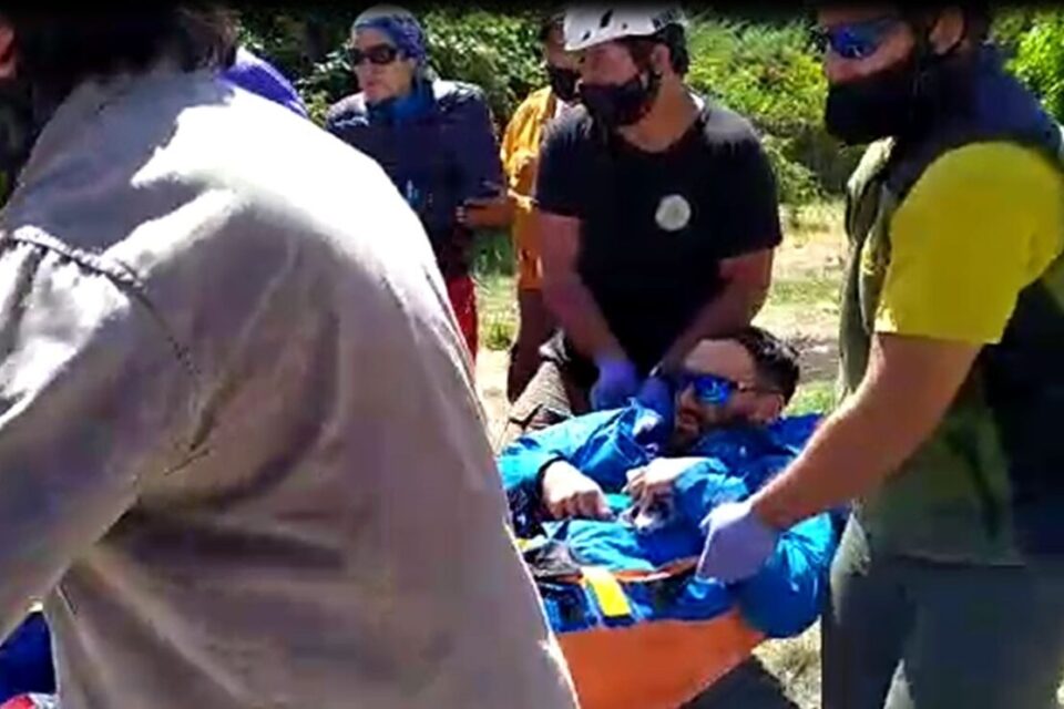 La primera atención la realizan los guías de montaña en el lugar, Luis Fabra, Héctor Poblete, Gabriel Antiqueo y Nahuel Alonso.