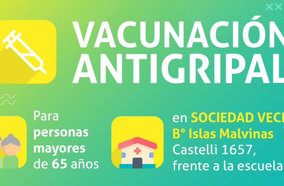 El dispositivo extra de vacunación antigripal de la Sociedad Vecinal del barrio Islas Malvinas de la ciudad de Neuquén, exclusivo para personas mayores de 65 años, comenzará a funcionar el próximo lunes 26 de abril, de lunes a viernes, de 8.30 a 14.