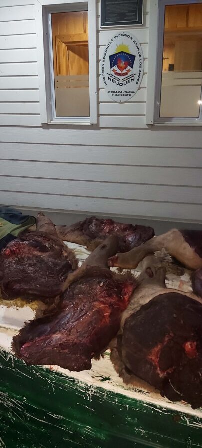 Junín de los Andes.- Ayer viernes (07/05), personal de la Brigada Rural y Abigeato de Junín de los Andes demoró a dos personas mayores de edad y secuestró distintas piezas de animal faenado durante procedimiento llevado a cabo en esta ciudad cordillerana.