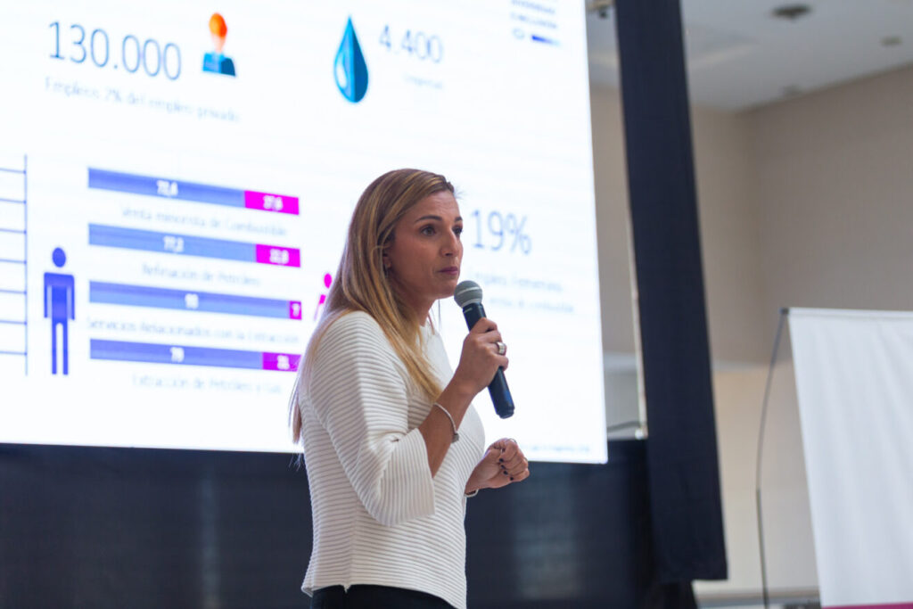 Por último, el conversatorio contó con la participación de la Ingeniera Química y representante del IAPG, Evangelina Cordero, quien expuso sobre las brechas laborales de género específicamente en la industria petrolera. “De 130 mil puestos de trabajo que generan más de 4 mil empresas, sólo el 19% está ocupado por mujeres”, informó la especialista. Dato que según indicó, “está muy por debajo del promedio que tienen las empresas privadas de otras industrias”.