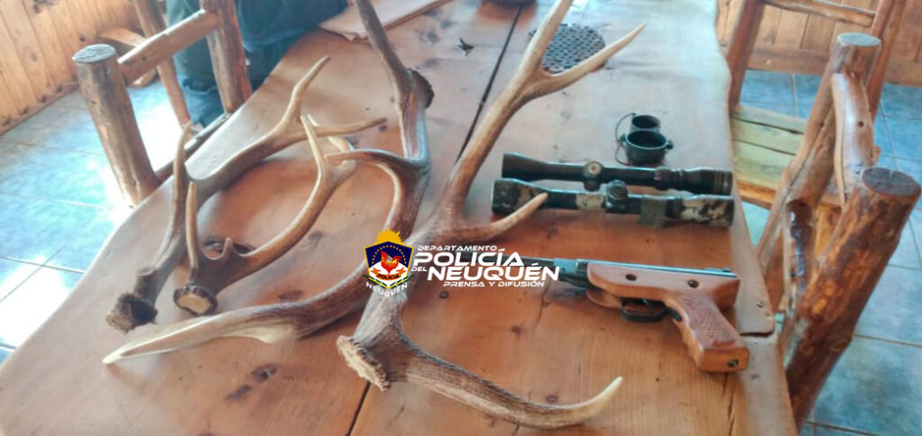 Un arma de fuego, siete cabezas de jabalí, cuatro de ciervo colorado, y elementos de interés a la causa fueron secuestrados ayer (14/04) por personal de la Brigada Rural y Abigeato Junín de los Andes procediendo además, a la detención de una persona en el Paraje La Esperanza.