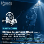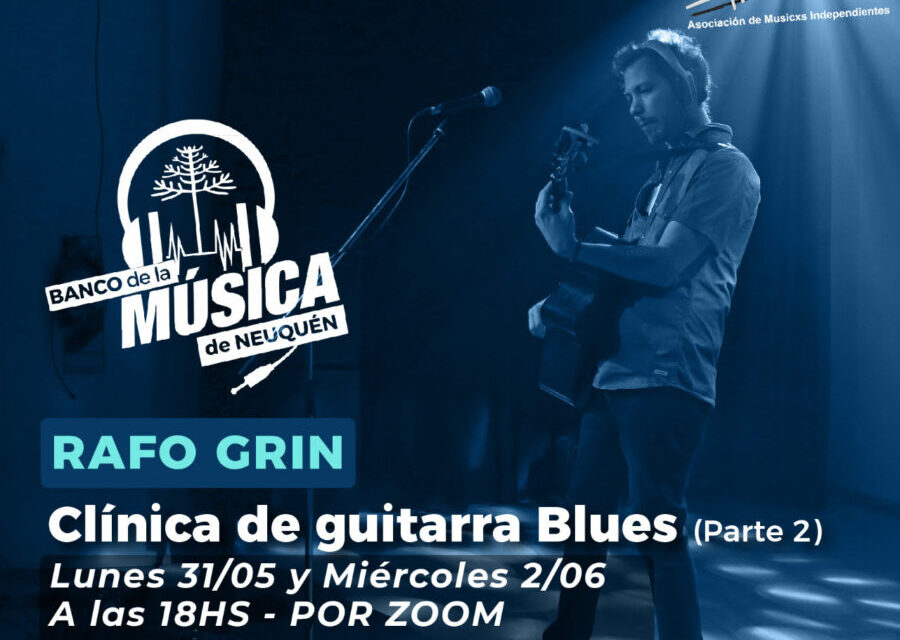 El ministerio de las Culturas invita a participar de la segunda Clínica de Guitarra Blues a cargo de Rafo Grin, que se llevará a cabo el lunes 31 de mayo y el miércoles 2 de junio a las 18, vía Zoom.