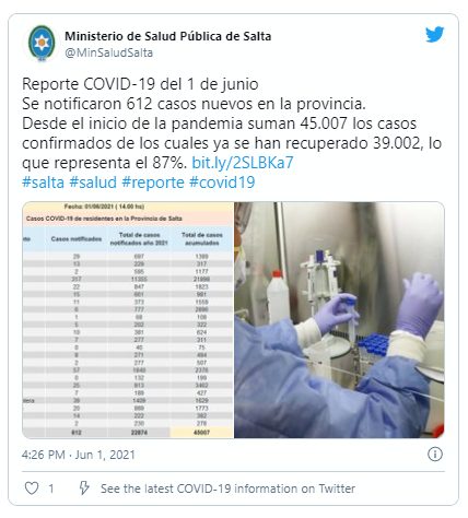 En Salta, el presidente del Comité Operativo de Emergencia (COE), Francisco Aguilar, explicó que la situación epidemiológica en la provincia “es muy diversa” y precisó que “Salta Capital está en riesgo epidemiológico alto”, mientras que otros departamentos que estaban en riesgo medio, “desde la semana pasada a esta pasaron a zona roja también”.
