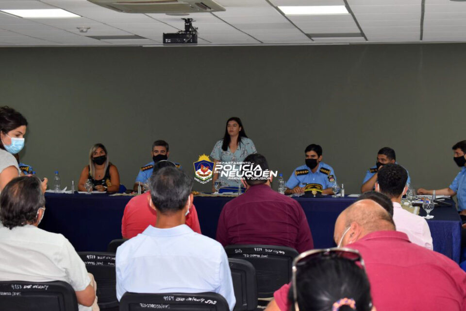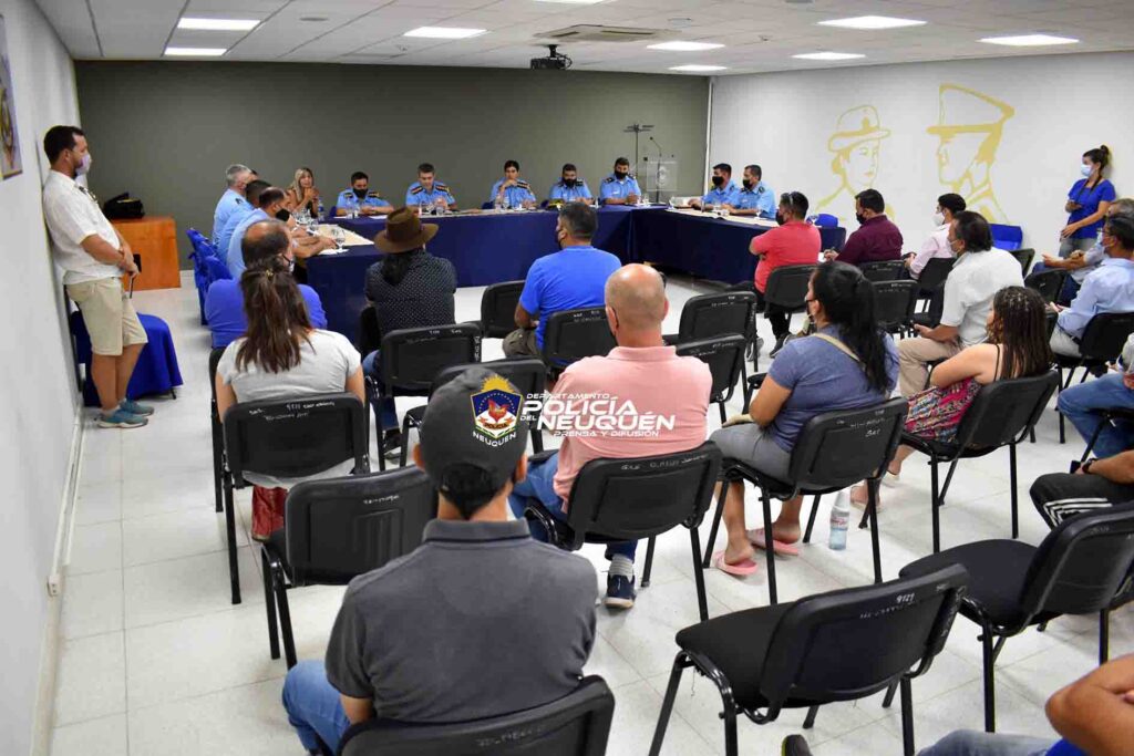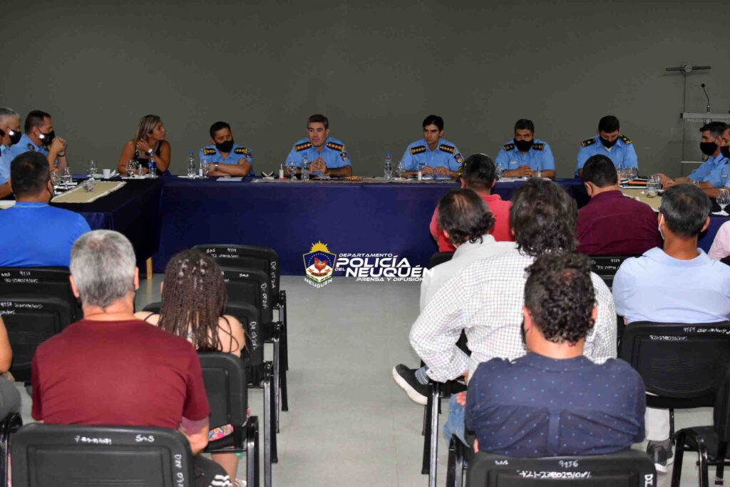 Las máximas autoridades de Policía, junto a titulares de áreas específicas de Seguridad del Gobierno de la provincia, se reunieron la tarde de hoy (29/12), en el salón de Usos Múltiples de la Jefatura de Calle Lanín y Saavedra, con presidentes de las diferentes comisiones vecinales de la ciudad Capital. Dicho evento, tuvo como fin reforzar los objetivos del Plan de Gestión de Seguridad Publica y Participación Ciudadana 2019-2023.
