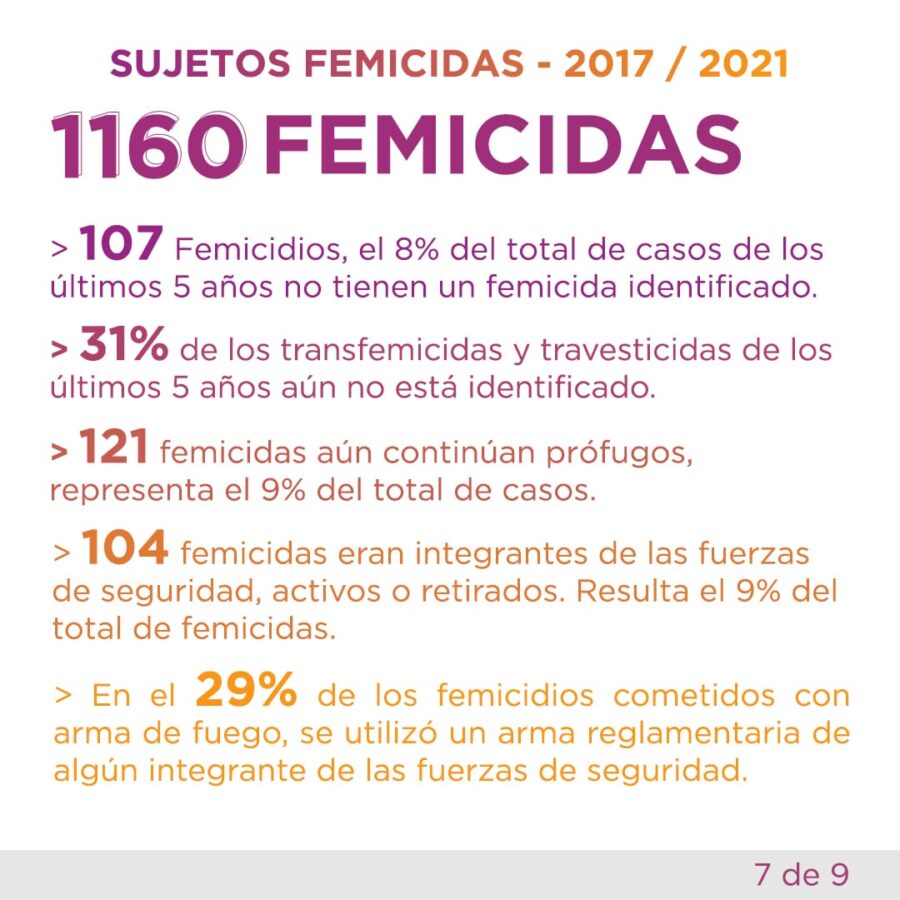-El 8% de los sujetos femicidas de los últimos 5 años aún no está identificado, 31% si se trata de transfemicidas y travesticidas.