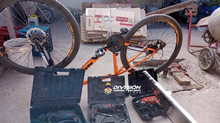 Una vez en la vivienda, el personal policial procedió a la identificación de dos personas, un hombre de 42 años y una mujer de 34. Asimismo, en el lugar y luego de una inspección ocular, se efectuó el secuestro de una bicicleta marca Motomel. También fueron ubicadas herramientas varias y un televisor de 50”, de estos dos últimos elementos el propietario adujo haberlos adquirido de dudosa procedencia por cuanto de manera preventiva también fueron secuestrados, conforme lo dispuesto por el Dr. Medina de la Fiscalía interviniente.