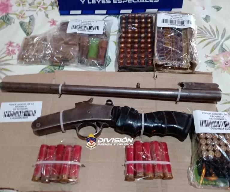 Las diligencias judiciales permitieron secuestrar un arma de fuego tipo escopeta, cartuchos calibre 14, calibre 9 milímetros, 11.25, 12.70, 22 y 38. Además secuestraron con colaboración del Departamento Antinarcóticos, aproximadamente 50 gramos de cannabis sativa.