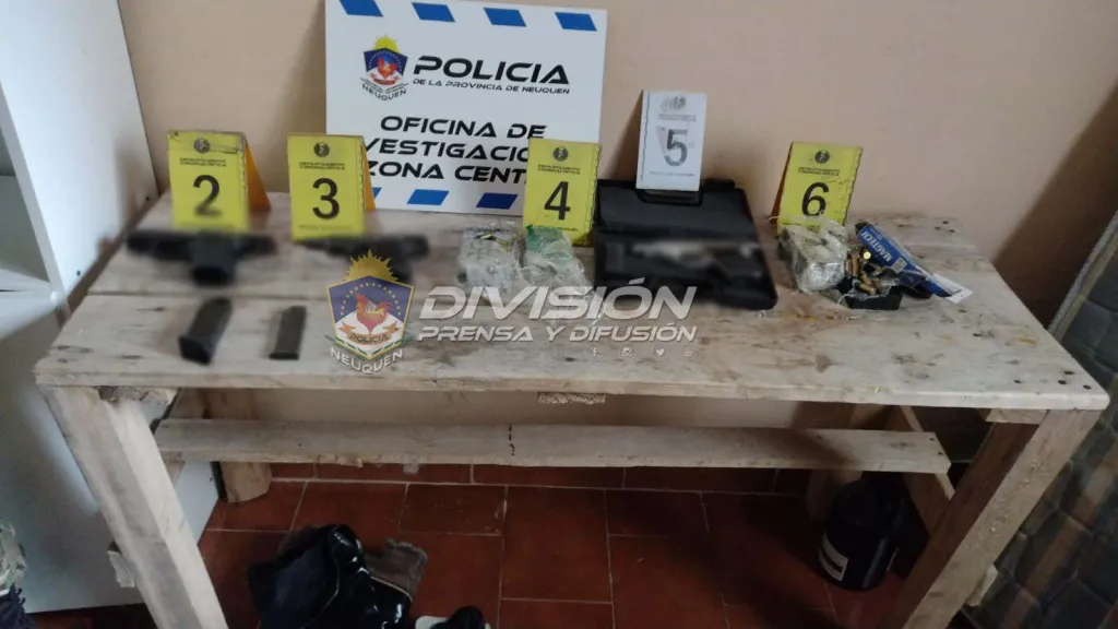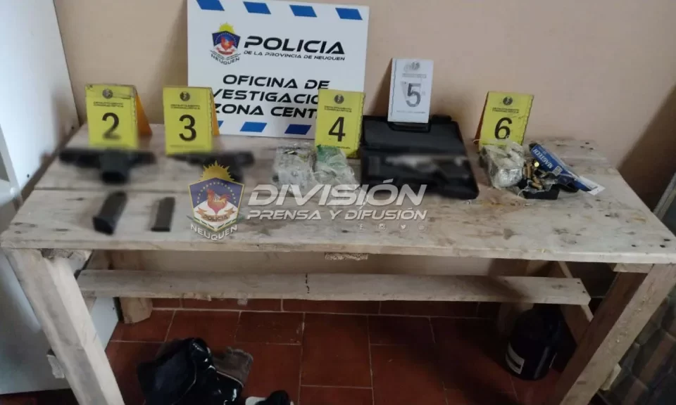 El resultado de los allanamientos fue positivo y permitió el secuestro de tres armas de fuego, dos de ellas calibre 9 milímetros y una calibre 7.65, además de municiones de diverso calibre. Las diligencias judiciales, posibilitaron también el secuestro de un rifle de aire comprimido, un auto VW Gol, presuntamente utilizado por los malvivientes y estupefacientes, que fueron incautados por el Departamento Antinarcóticos Neuquén.