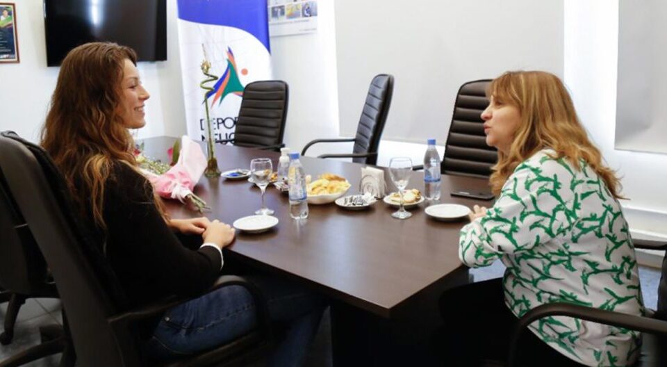 La deportista Gisella Bonomi se reunió con la ministra de Deportes, Alejandra Piedecasas para compartir su experiencia con la Selección Argentina de beach handball en el Mundial, como así también la alegría por haber conseguido la medalla de bronce en los World Games de Birmingham en Estados Unidos, también con el combinado nacional.