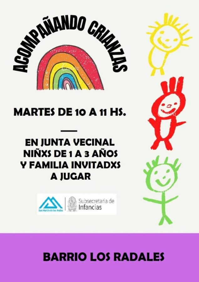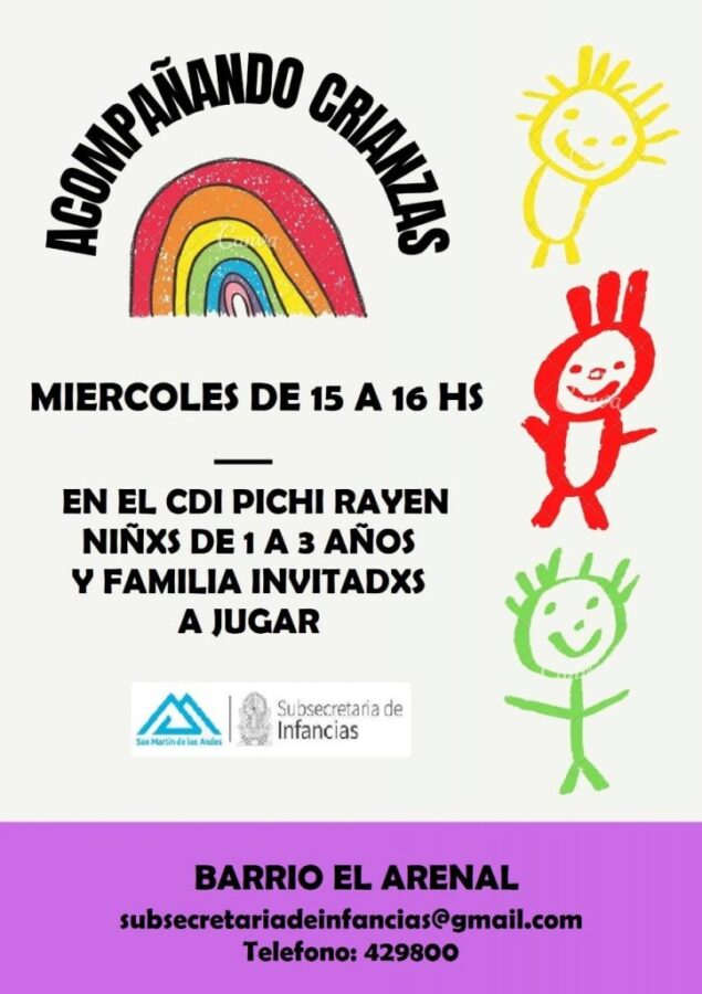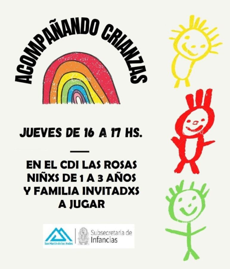 La Subsecretaría de Infancias de San Martín de los Andes invita a las familias con niños y niñas de entre 1 y 3 años a participar de los encuentros de “Acompañando Crianzas” que comienzan esta semana, así como sumarse al que que ya se encuentra en funcionamiento.