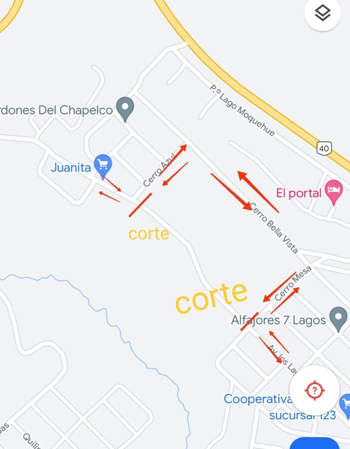 A raíz de los trabajos y la maquinaria dispuesta, se mantendrá interrumpido el tránsito entre Cerro Azul y Cerro Mesa, desviándose por Cerro Bella Vista (ver imagen adjunta).