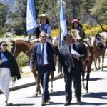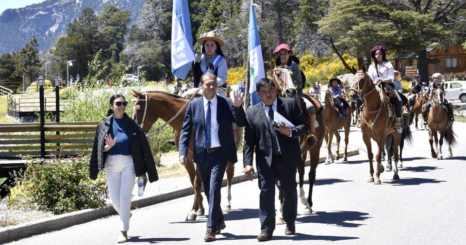 Con motivo de celebrarse el 86º aniversario de Villa Traful, el gobernador Omar Gutiérrez presidió el acto central acompañado por el presidente de la comisión de fomento, Omar Torres.