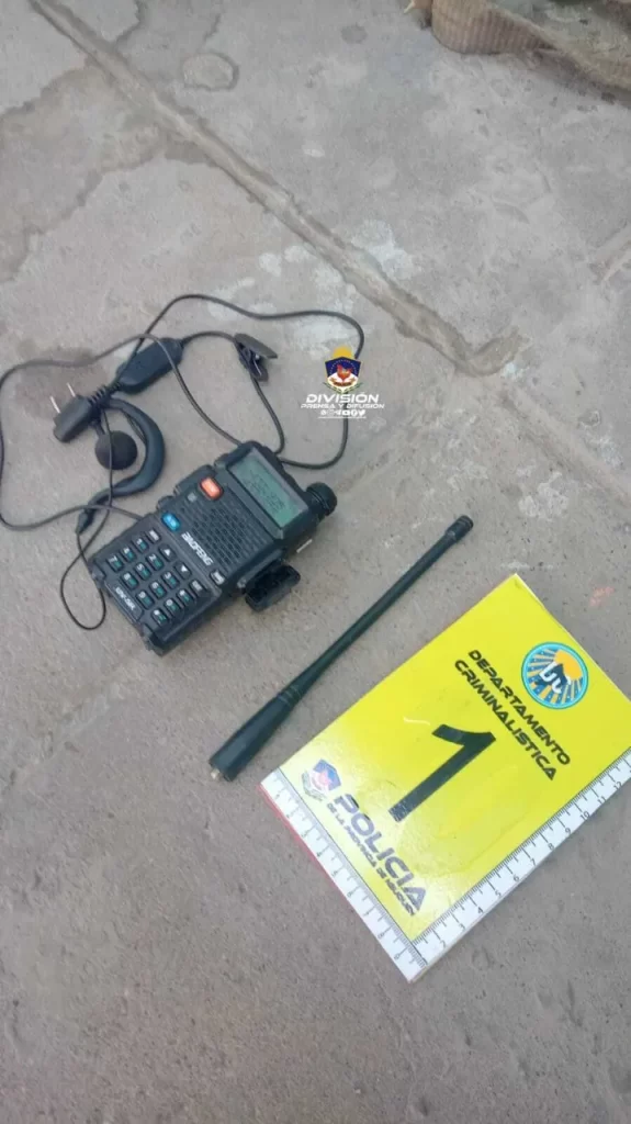 Al advertir la presencia policial, el sujeto intentó despojarse de un elemento que tenía en su poder, pero la maniobra fue advertida por los uniformados, que procedieron con el secuestro del artefacto, que resultó ser un equipo de comunicación VHF. En su poder, el malviviente tenía también otros elementos presuntamente mal habidos.