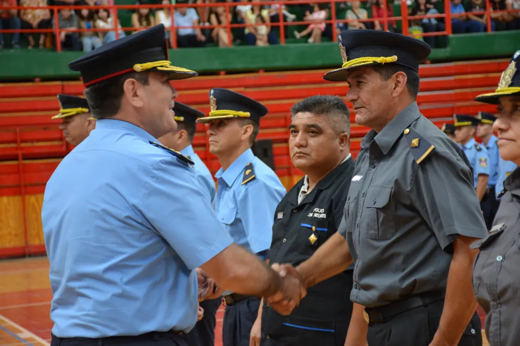 Esta mañana (02/01) en el estadio Ruca Che, se llevó a cabo el “Acto imposición de jerarquías para Personal Superior y Subalterno”, contando con la presencia del Gobernador de la Provincia Cr Omar Gutiérrez, Vicegobernador Cr Marcos Koopman Irizar, Secretaria de Seguridad Lic. Marianina Domínguez, el Jefe de Policía Comisario General Julio Ariel Peralta, Subjefe de Policía Comisario General Luis Alejandro Arango, integrantes del CAS, Coordinadora de Seguridad Lic. Efigenia Di Benedetto, demás integrantes de la Policía del Neuquén.
