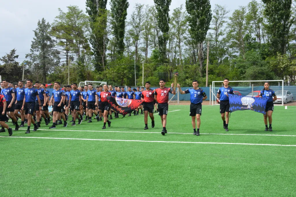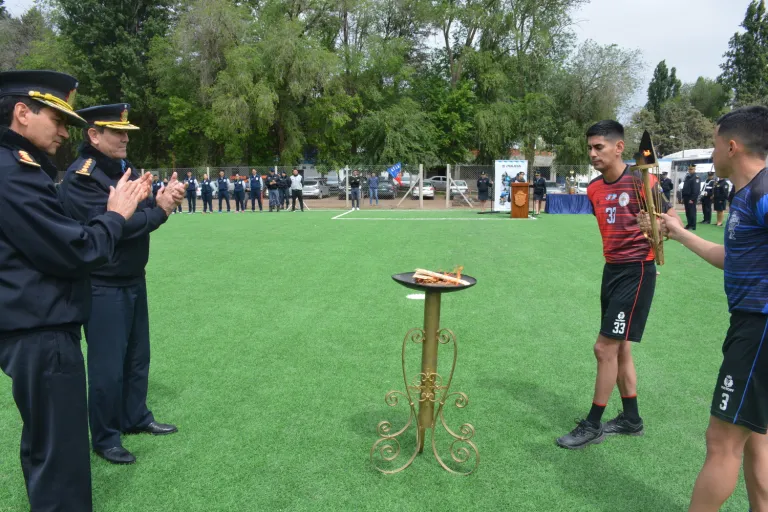 Posteriormente los capitanes de ambos equipos, equipo azul ATLAS y equipo rojo OLIMPO, se dirigieron al centro de la cancha, invitándose a las máximas autoridades policiales para encender la antorcha olímpica, como testimonio de esta noble competencia entre equipos.