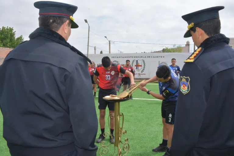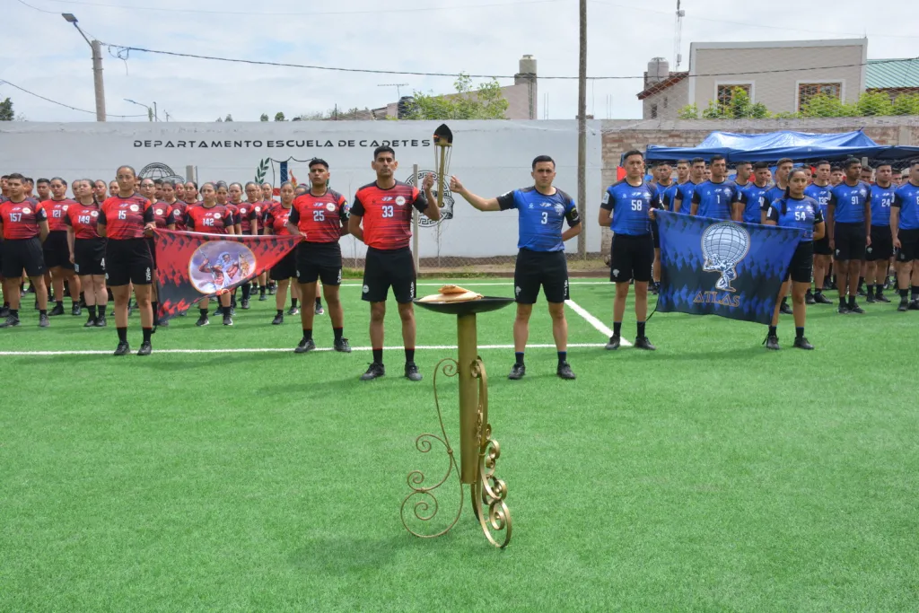 El inicio contó con el ingreso de los cadetes al predio de la cancha de césped sintético, entonando la marcha “Olimpiadas del Cadete” acompañados por los acordes de la banda de Música de la Policía a cargo del Comisario Esteban Vázquez.