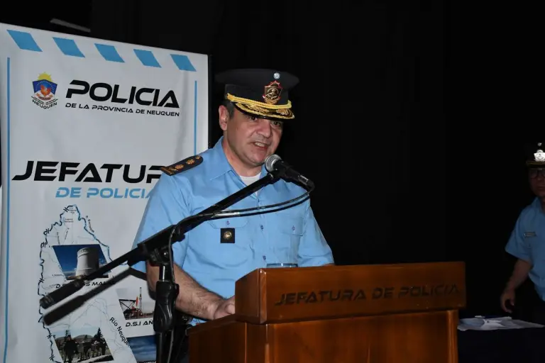 Continuando con la ceremonia hizo uso de la palabra el Director de la Direccion Seguridad Interior Zapala, Comisario Mayor Natalio Santos Morales, quien felicitó y agradeció el trabajo de cada hombre y mujer de esta comisaría, como así a los retirados que fueron y seguirán siendo parte de esta noble institución policial.