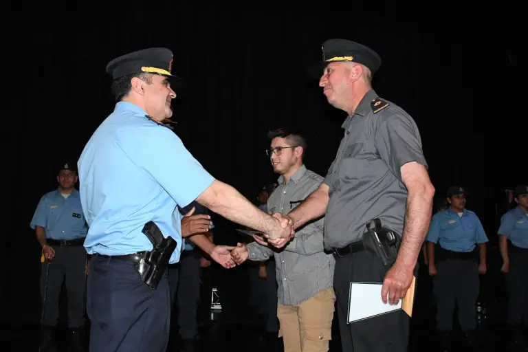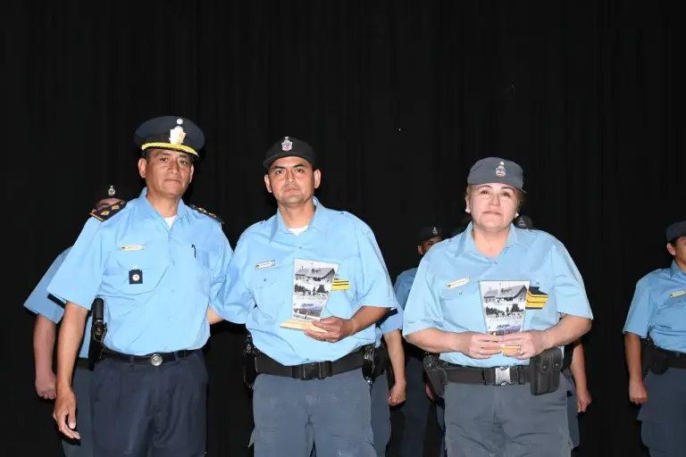 En el inicio de la ceremonia se entonaron las estrofas de los Himnos Nacional y Provincial acompañado por los acordes de la Banda de Música de nuestra Institución a cargo del Comisario Esteban Vázquez, para dar lugar a la lectura de la breve reseña historia de la creación de esta Comisaría que comenzó sus primeros años integrada por Policías de Territorio.