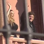 Posteriormente, a las 18.30, Milei y Flórez salieron a saludar desde el balcón a la gente que se había agolpado en las puertas de la Rosada.