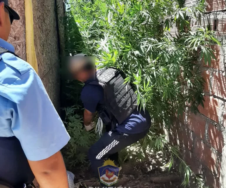 El hallazgo, se produjo ayer (22/01) en una vivienda del barrio La Meseta de la mencionada localidad, cuando los uniformados realizaban otra diligencia judicial que les permitió llegar hasta el patio trasero donde se encontraba la plantación.