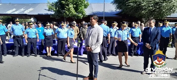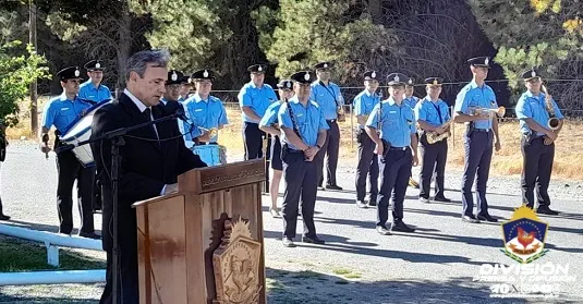 Continuando con la ceremonia hizo uso de la palabra el Dr. Gustavo Lucero abogado querellante de la familia y a su término se dirigió a los presentes el titular de la Dirección Seguridad Interior Junín de los Andes, Comisario Inspector Bonifacio Zapiola, quienes resaltaron el valor y compromiso del Suboficial Mayor (PM) José Eduardo Aigo para con la comunidad.