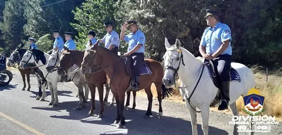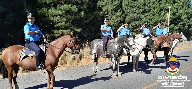 Finalizando el acto procedieron a retirar simbólicamente un caballo, fiel compañero de trabajo del Suboficial Mayor (PM) José Eduardo Aigo, para que se dirija a los presentes el Ministro de Seguridad Dr. Matías Nicolini, quien puso en valor el compromiso de nuestro mártir, como así enfatizó el compromiso del Gobierno Provincial para dar con las dos personas de Nacionalidad Chilena, autores de este cobarde hecho.