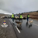 Los efectivos colaboraron con dos crianceros, los cuales transitaban por la ruta con los animales en el marco del retorno de la veranada, los mismos transportaban un total de 2135 caprinos, 90 ovinos, 52 equinos y 200 bovinos.