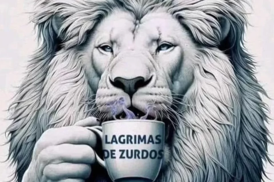 Además, el presidente ilustró su comentario con la foto de un león, sosteniendo una taza con la leyenda: “Lágrimas de zurdos”.