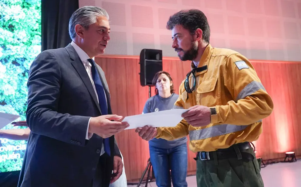“Queremos invertir en su trabajo y en ustedes”, recalcó y añadió que “un daño ambiental no se revierte cuando uno apaga el fuego, se termina de revertir cuando uno termina recuperando y nunca queda igual lo que el fuego terminó dañando”.