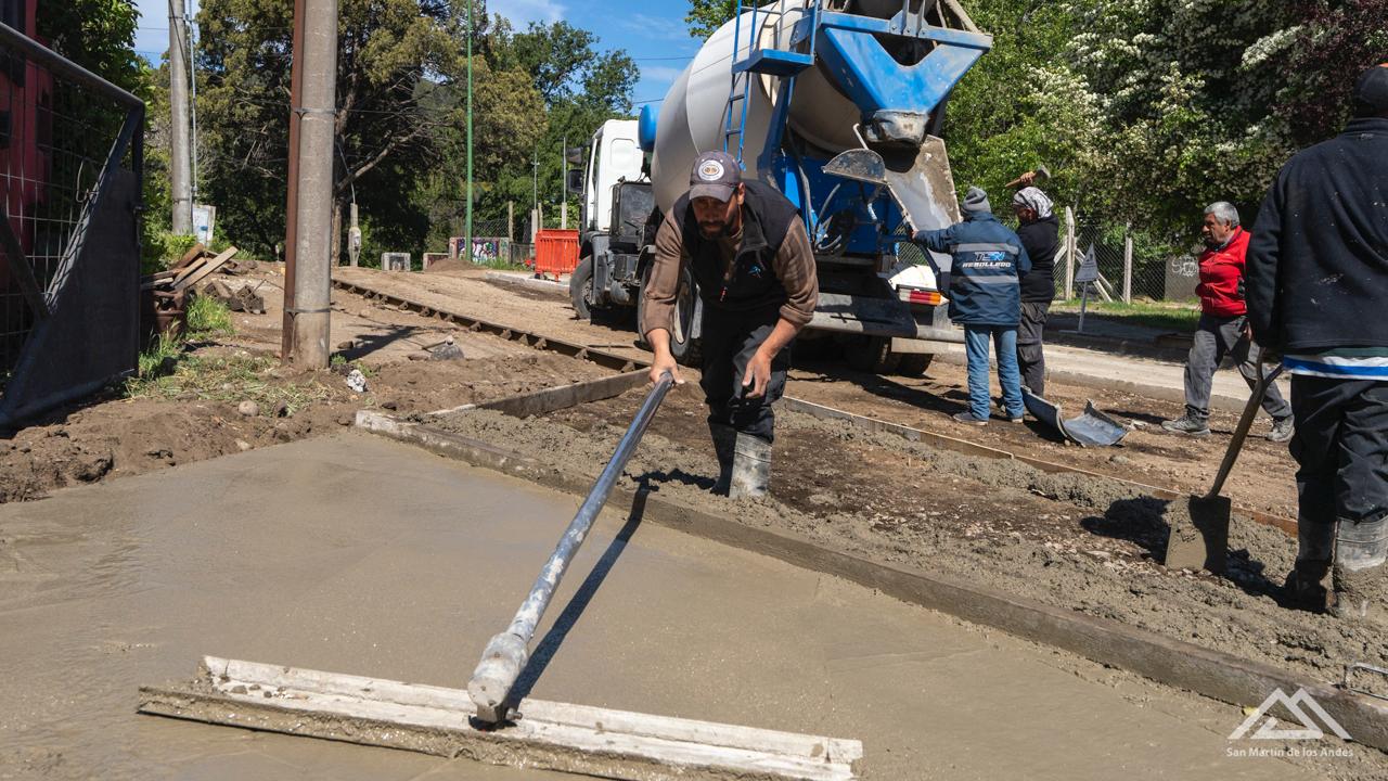 San Martín de los Andes.- La cuadrilla de Obras Públicas completó de hormigón los casi 500 metros de la calle Los Pinos, que permite que el pavimento llegue desde Las Mosquetas hasta el Cpem 57 y hasta el corralón municipal.